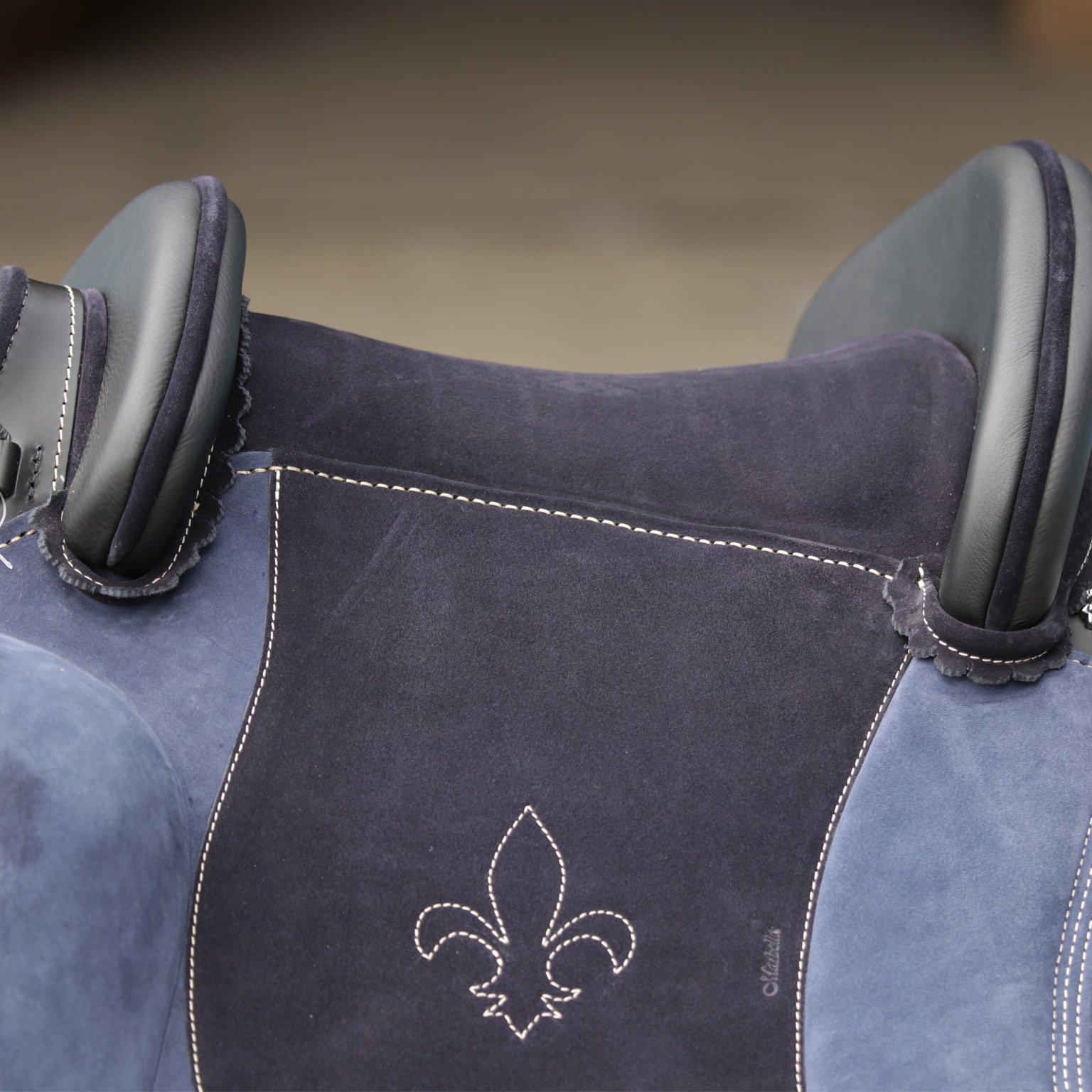 Beautiful baroque saddle with a fixed outer flap for top hold in the saddle. The suede leather also provides good grip and conveys a sense of security. Also ideal for somewhat anxious riders! Of course, the special design is suitable for more withers and more complicated backs.